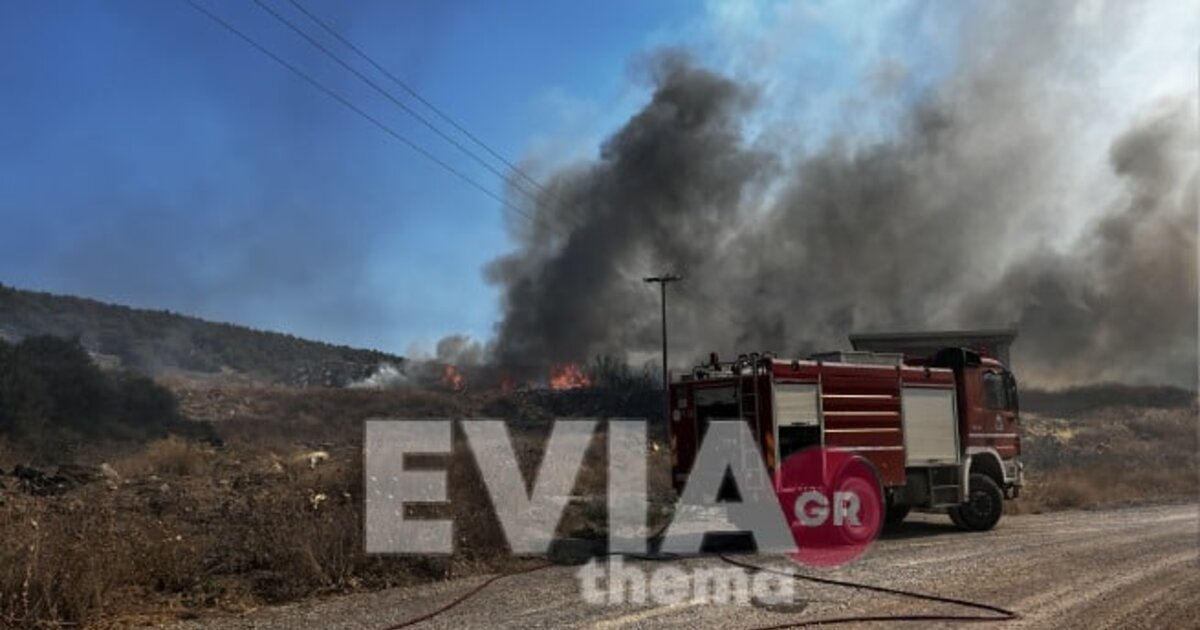 Η πρώτη πυρκαγιά,σύμφωνα με το eviathema.gr είναι πίσω από το Πανεπιστήμιο Ψαχνών και η δεύτερη στη θέση Καλκαντρί..
