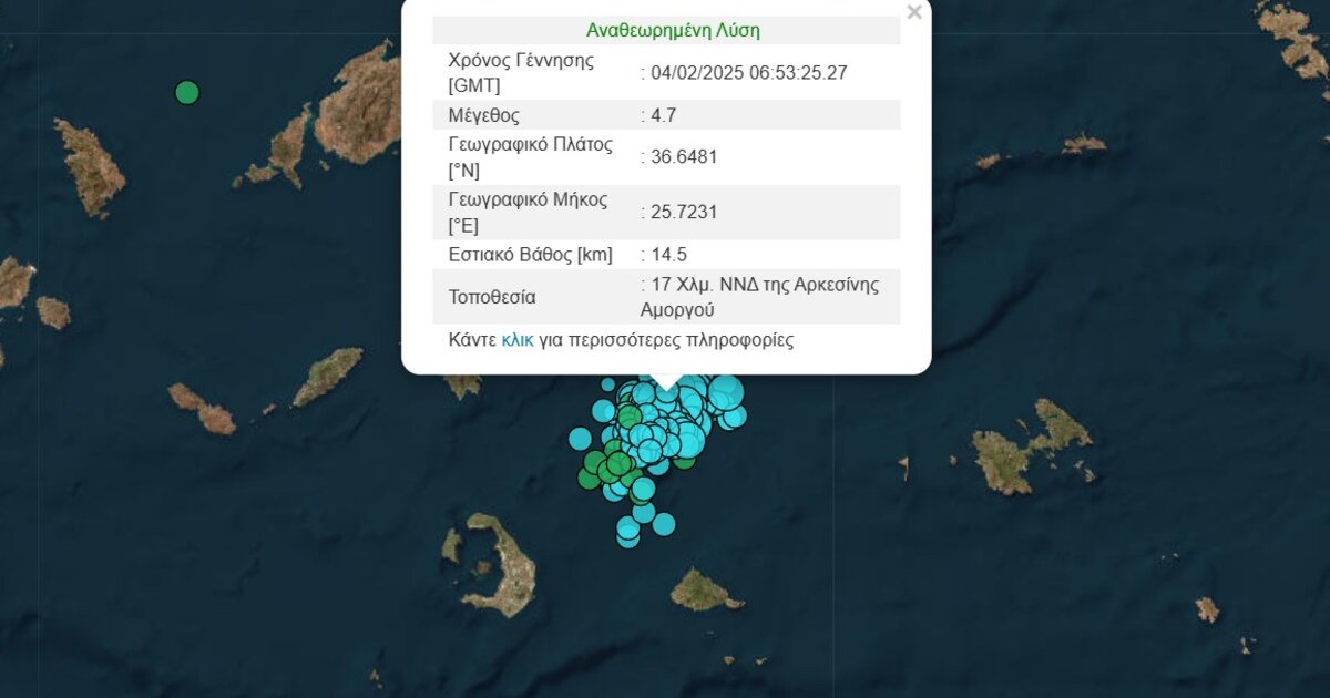 Νωρίτερα είχε καταγραφεί ισχυρός σεισμός 4,8 βαθμών της κλίμακας Ρίχτερ, στην θαλάσσια περιοχή της Αμοργού.