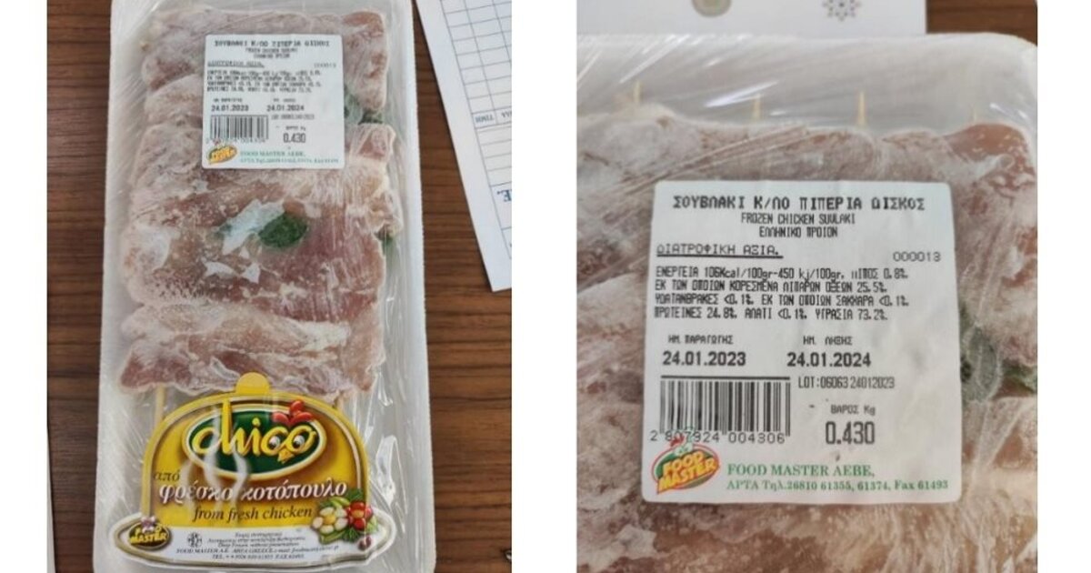 Συγκεκριμένα, ο ΕΦΕΤ και ειδικότερα η Περιφερειακή Διεύθυνση Ηπείρου, κατά τη διενέργεια ελέγχων προέβη σε δειγματοληψία κατεψυγμένου παρασκευάσματος από κρέας κοτόπουλου, με τα στοιχεία: «ΣΟΥΒΛΑΚΙ ΚΟΤΟΠΟΥΛΟ ΚΤΨ ΜΕ ΠΙΠΕΡΙΑ ΔΙΣΚΟΣ - Chico από φρέσκο κοτόπουλο» με ημερομηνία παραγωγής 24-01-2023 και ημερομηνία λήξης 24-01-2024, που παράγεται από την εταιρεία FOOD MASTER AEBE.