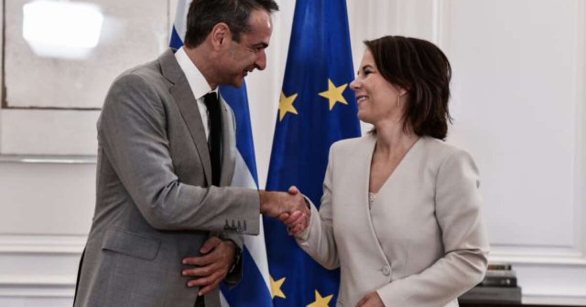 Ο πρωθυπουργός Κυριάκος Μητσοτάκης, συναντήθηκε το πρωί, στο Μέγαρο Μαξίμου με την υπουργό Εξωτερικών της Ομοσπονδιακής Δημοκρατίας της Γερμανίας, Annalena Baerbock.