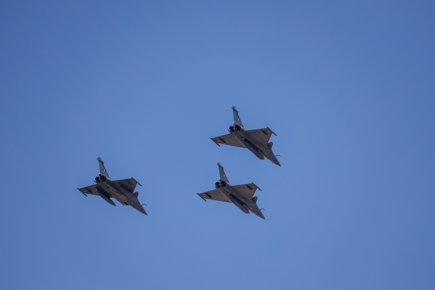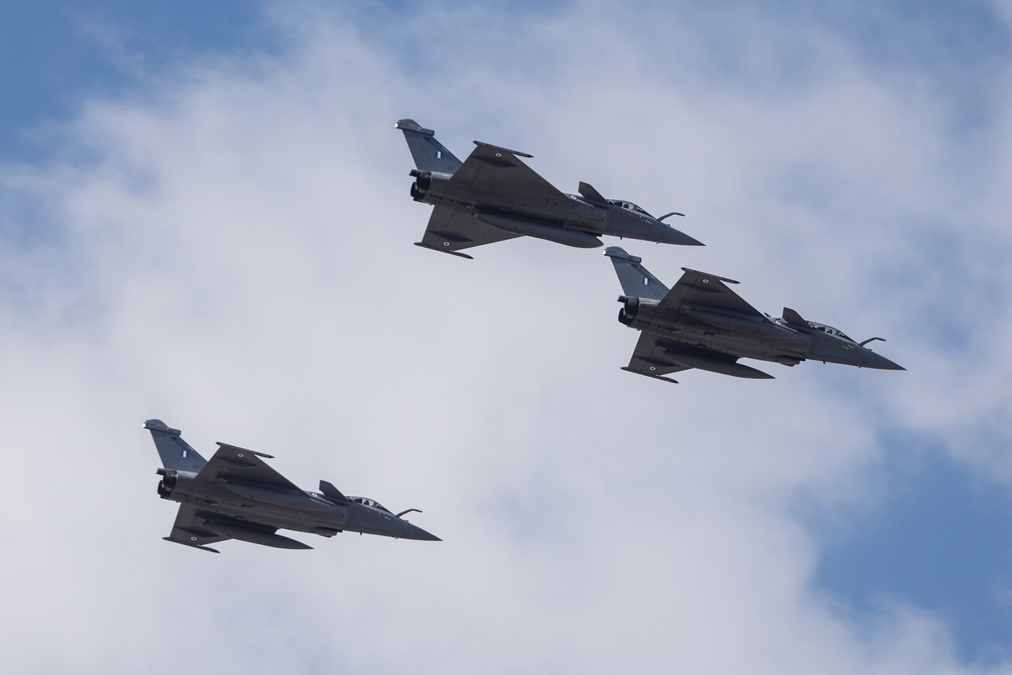 Με τιμητική διέλευση πάνω από την Ακρόπολη, λίγο προτού τροχοδρομήσουν στην Τανάγρα, σηματοδοτήθηκε η ένταξη στην 332η Μοίρα «Γεράκι» της Πολεμικής Αεροπορίας των πρώτων έξι Rafale.