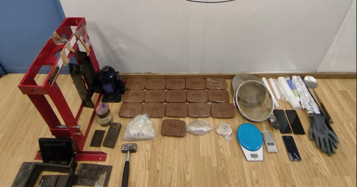 Κατασχέθηκε ηρωίνη βάρους 8 κιλών, σκόνη άγνωστης χημικής σύστασης 730 γραμμαρίων, εξοπλισμός εργαστηρίου νόθευσης και επανατυποποίησης της ηρωίνης, δύο ηλεκτρονικές ζυγαριές και τρία κινητά τηλέφωνα.