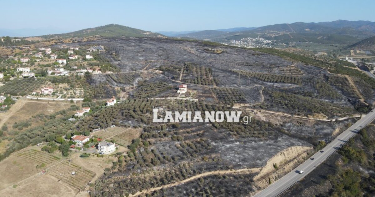 Σε σεληνιακό τοπίο έχει μετατραπεί ένα μεγάλο μέρος του Αφάνου από τη χθεσινή πυρκαγιά στην περιοχή της Λαμίας.