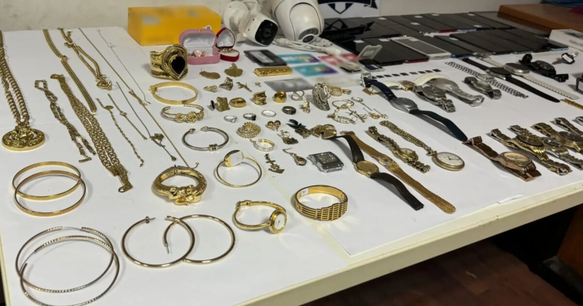 Σε έρευνες που πραγματοποιήθηκαν σε οικίες, μεταξύ άλλων, βρέθηκαν και κατασχέθηκαν κοσμήματα, χρυσαφικά, ρολόγια, πλήθος κινητών τηλεφώνων και ηλεκτρονικών συσκευών.