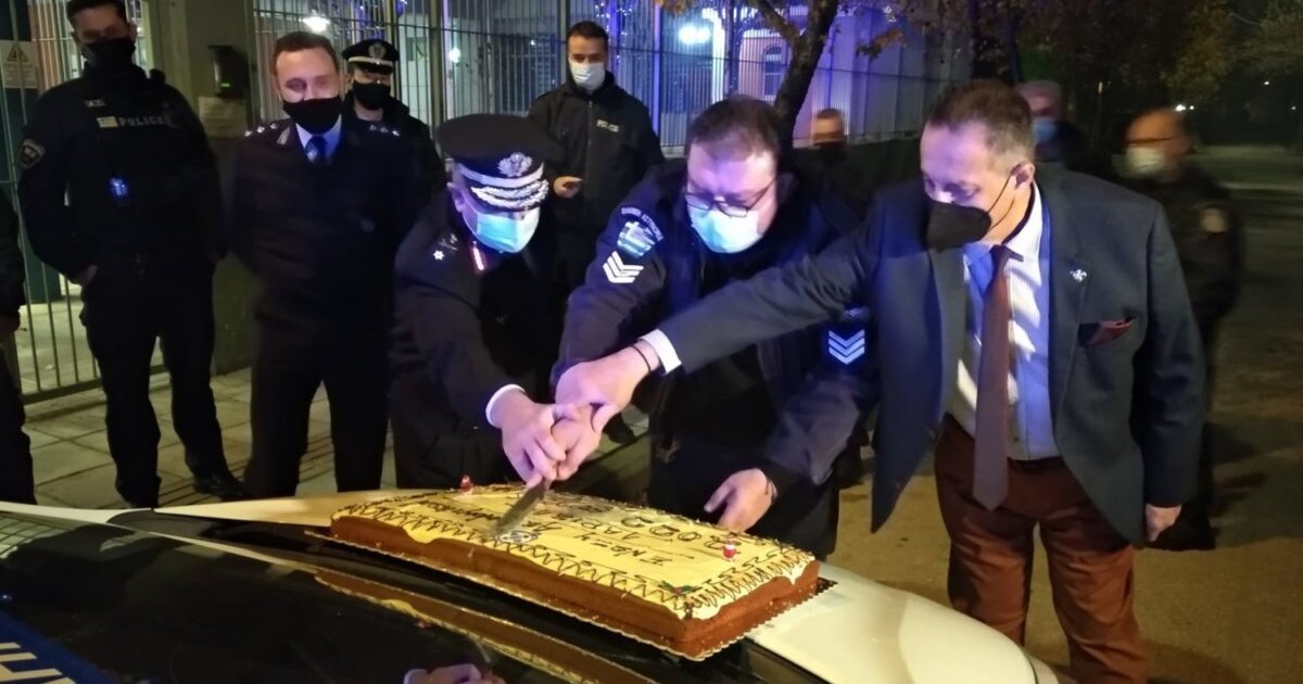 Το έθιμο τηρήθηκε και φέτος. Η κοπή της πρωτοχρονιάτικης βασιλόπιτας έγινε πάνω σε περιπολικό στην είσοδο του Αστυνομικού Μεγάρου Λάρισας!