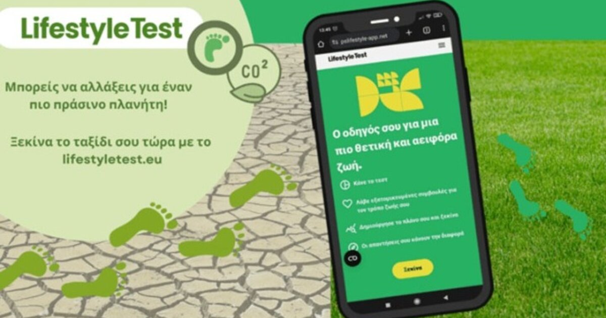 Μέσω της νέας διαδικτυακής εφαρμογής Lifestyletest, έχεις τη δυνατότητα να μετρήσεις το προσωπικό σου περιβαλλοντικό αποτύπωμα, να κατανοήσεις πώς επιδρά στο περιβάλλον ο τρόπος με τον οποίο ζεις, τρως, μετακινείσαι και καταναλώνεις και να σε εμπνεύσει να υιοθετήσεις έναν πιο βιώσιμο και υγιεινό τρόπο ζωής.