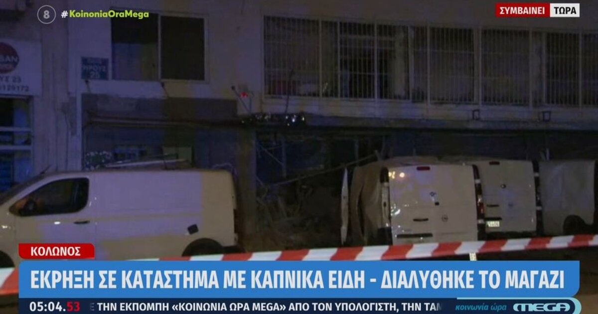 Έκρηξη σημειώθηκε σε κατάστημα καπνικών στον Κολωνό τα ξημερώματα της Δευτέρας.