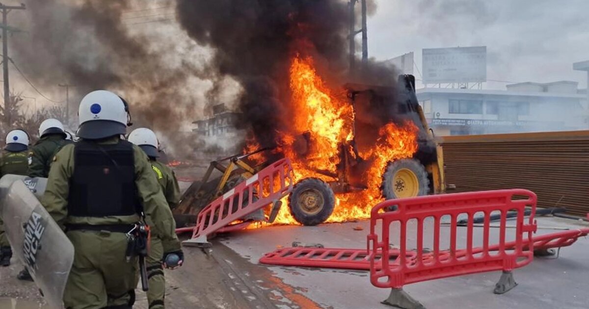 Ακόμη, πυρπόλησαν δύο οχήματα εκσκαφέων. Στο σημείο βρίσκεται ισχυρή αστυνομική δύναμη, ενώ συναγερμός έχει σημάνει στην Πυροσβεστική Υπηρεσία, η οποία στέλνει στο σημείο δυνάμεις. Οι αστυνομικοί των ΜΑΤ απάντησαν με χρήση χημικών και κρότου λάμψης. Σύμφωνα με πληροφορίες του theopinion.gr, υπάρχει ένας τραυματίας.