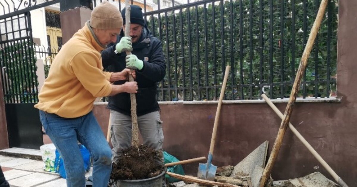 Πρόκειται για μια πρωτοβουλία του σχολείου σε συνεργασία με την περιβαλλοντική οργάνωση Μαμαγαία που αποφάσισαν να αποκαταστήσουν και να ομορφύνουν το δημόσιο χώρο φυτεύοντας ένα νέο δέντρο.