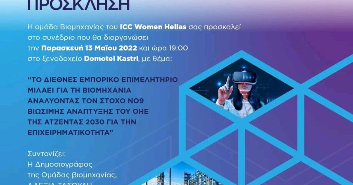 Η Ομάδα Βιομηχανίας του «ICC Women Hellas» διοργανώνει την Παρασκευή 13/05/22, στις 7μμ, στο DOMOTEL Καστρί , Εσπερίδα με Θέμα :