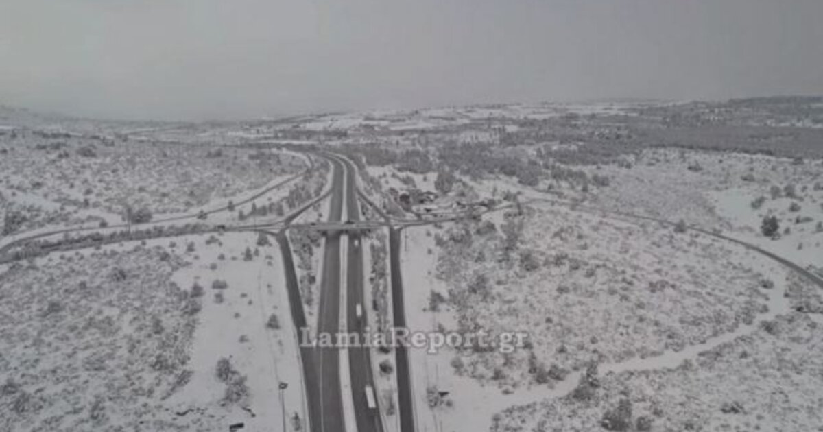 Εντυπωσιακή εικόνα - Η χιονισμένη εθνική οδός Αθηνών - Λαμίας από ψηλά