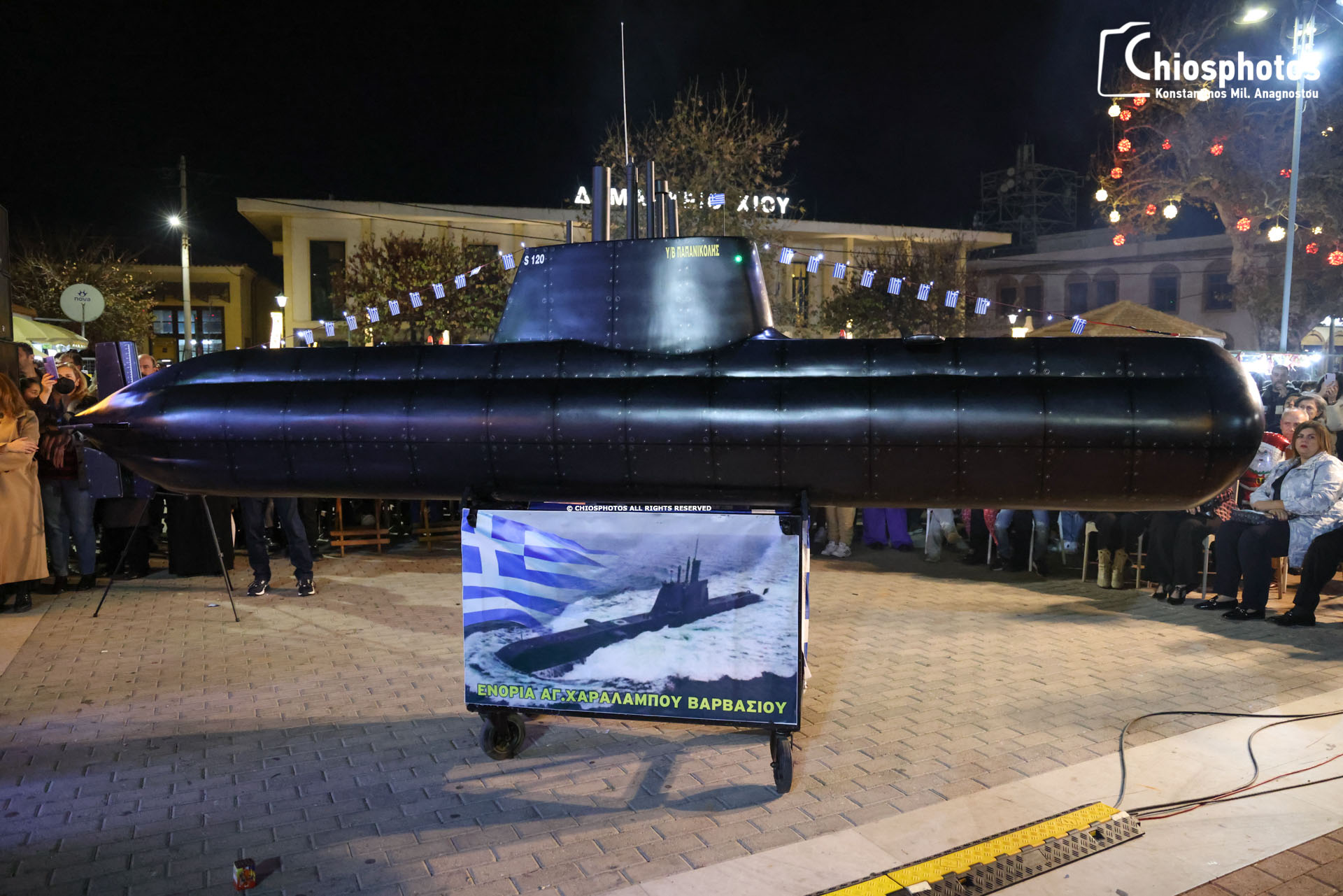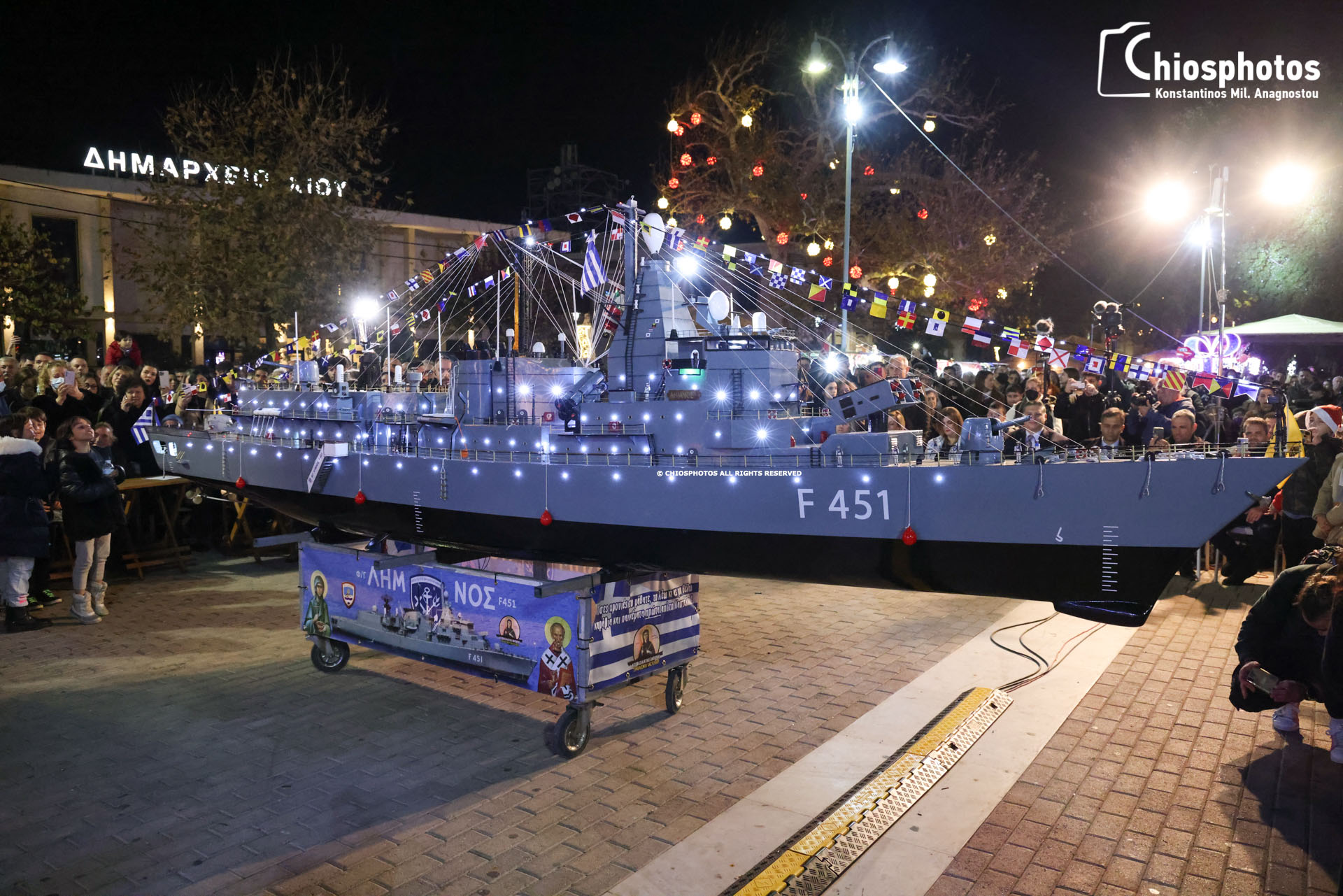 Τα παιδιά από τις ενορίες της Παναγίας Λέτσαινας, Αγίας Παρασκευής Καστέλο, Παναγίας Βοήθειας, Αγίου Γεωργίου Φρουρίου, Βαρβασίου και Καρυών έβαλαν όλη τους την τέχνη και το μεράκι κατασκευάζοντας εντυπωσιακά ομοιώματα πολεμικών πλοίων. Πλήθος κόσμου γέμισε την πλατεία της Χίου την παραμονή της πρωτοχρονιάς για να παρακολουθήσει το μοναδικό αυτό έθιμο και να ακούσει τα παινέματα των πληρωμάτων.