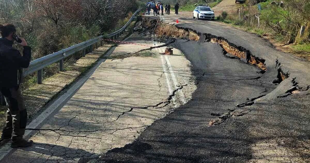 Ο δρόμος «βούλιαξε» στην κυριολεξία αφού το οδόστρωμα στο συγκεκριμένο σημείο έχει υποχωρήσει σε βάθος άνω του ενός μέτρου και για μεγάλο μήκος…