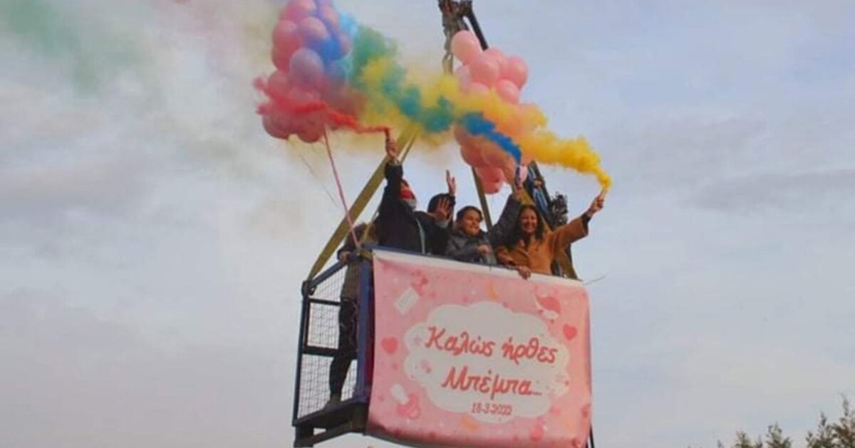 Η οικογένεια και οι φίλοι της 25χρονης Μαρίας Μπάνιου, που έφερε στον κόσμο το μωράκι της πριν από λίγες ώρες και δεν μπορούσαν να βρεθούν στο δωμάτιο της κλινικής, λόγω των μέτρων που ισχύουν για τον περιορισμό εξάπλωσης της πανδημίας του κορωνοϊού, βρέθηκαν στο... παράθυρό της. Μάλιστα, χειριστής του γερανού που πραγματοποίησε το πρωτότυπο επισκεπτήριο στον αέρα, ήταν ο παππούς της νεογέννητης μπέμπας.