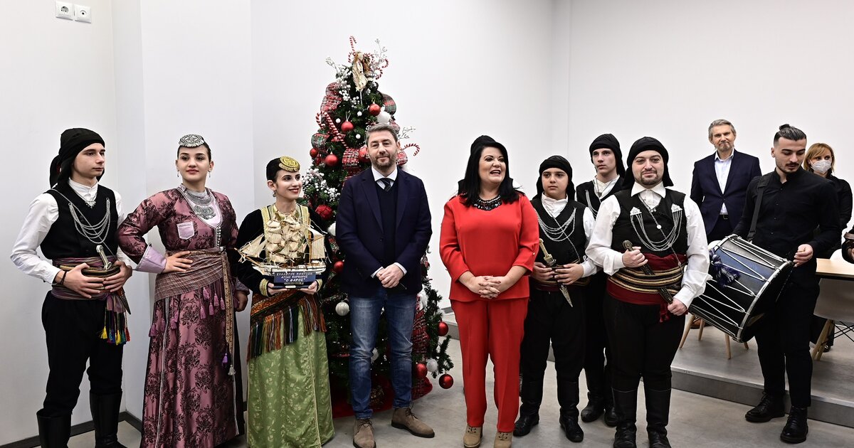 O Νίκος Ανδρουλάκης άκουσε τα κάλαντα από τον Σύλλογο Ποντίων Αγίας Βαρβάρας «Ο Φάρος».