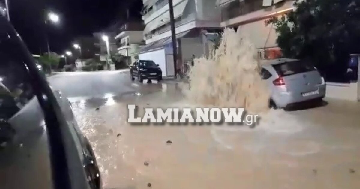 Μία απίστευτη εικόνα αντίκρισαν τα ξημερώματα της Κυριακής διερχόμενοι από την οδό Ναυπάκτου στη Λαμία. Ένας τεράστιος πίδακας νερού ξεπήδησε από το έδαφος όταν κεντρικός αγωγός ύδρευσης έσκασε και πλημμύρισε το οδόστρωμα.