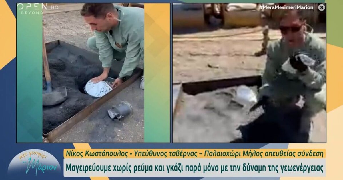 Ο Νίκος Κωστόπουλος υπεύθυνος ταβέρνας στην Μήλο εξηγεί πως μαγειρεύουν στο νησί χωρίς ρεύμα παρά μόνο με τη δύναμη της γεωνέργειας.
