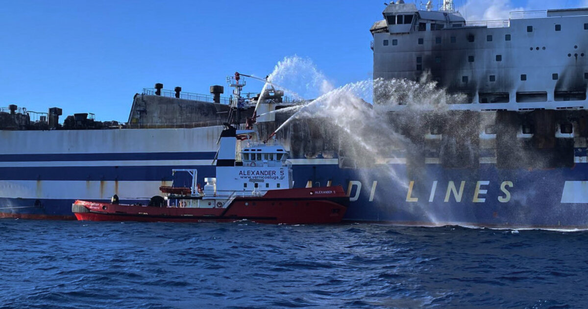 Στο εσωτερικό του πλοίου πλέον δεν υπάρχουν φλόγες παρά μόνο καπνοί, ενώ το σκάφος έχει μεταφερθεί βόρεια της Κέρκυρας, όπου ρυμουλκά σκάφη συνεχίζουν τις ρίψεις νερού για να επιτευχθεί η ψύξη των μεταλλικών επιφανειών.