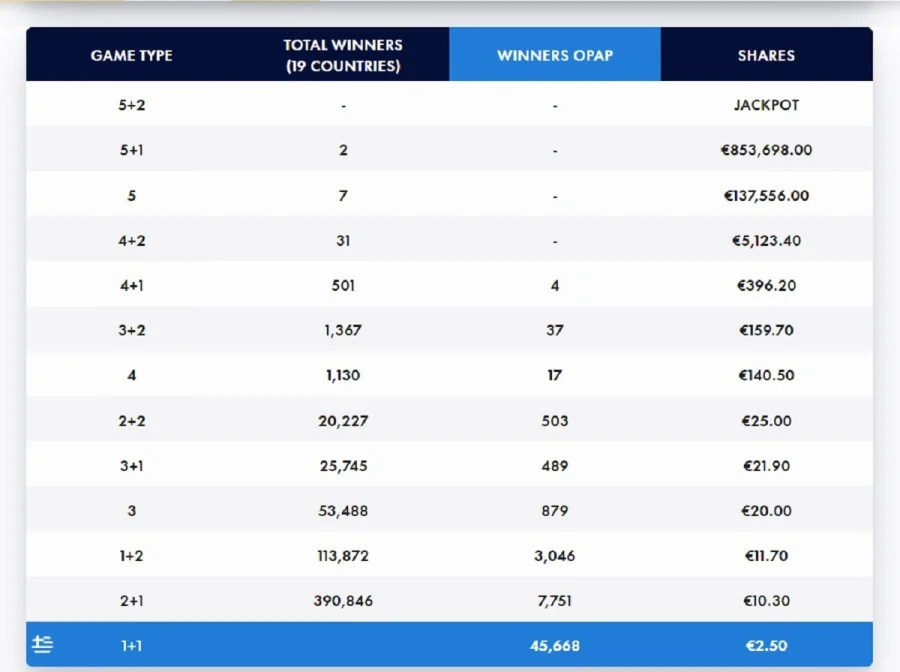 Δείτε αναλυτικά τον πίνακα κερδών της σημερινής κλήρωσης του Eurojackpot.
