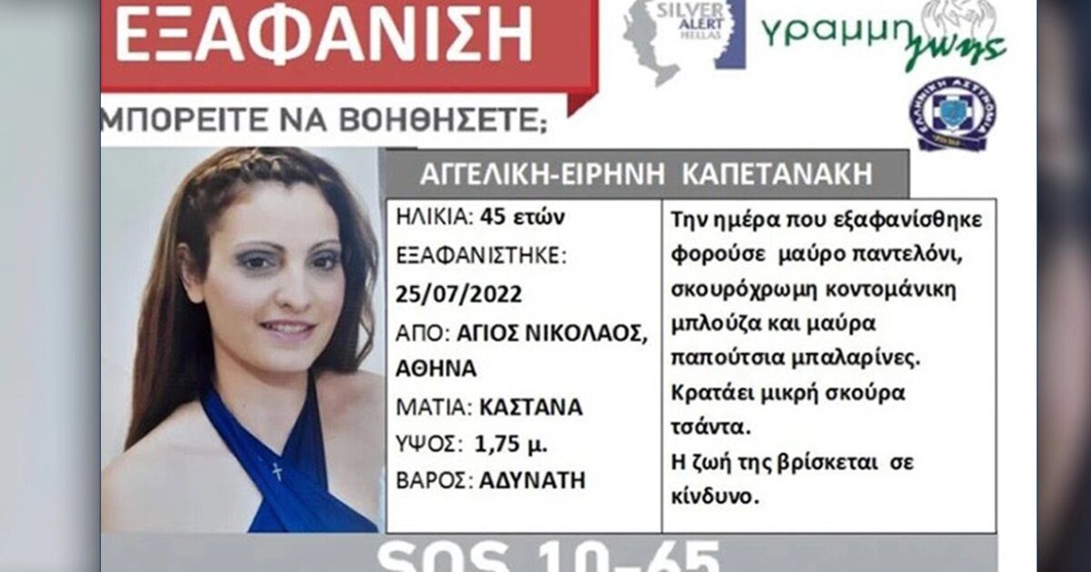 Εξαφανισμένη για 5 μέρα, η 45χρονη Αγγελική -Ειρήνη Καπετανάκη