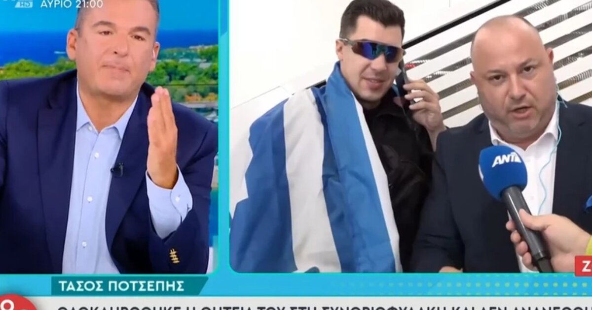 Ο Τάσος Ποτσέπης μαζί με τον δικηγόρο του, Ανδρέα Θεοδωρόπουλο, εμφανίστηκαν στην εκπομπή «Το Πρωινό» με τον Γιώργο Λιάγκα να αντιδρά όταν ο πρώτος έβαλε πάνω του την ελληνική σημαία.