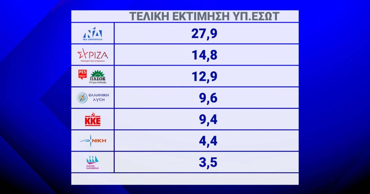 Την εκτίμησή του για το τελικό αποτέλεσμα στις ευρωεκλογές 2024 δημοσιοποίησε η Singular Logic, χωρίς την ενσωμάτωση της επιστολικής ψήφου: