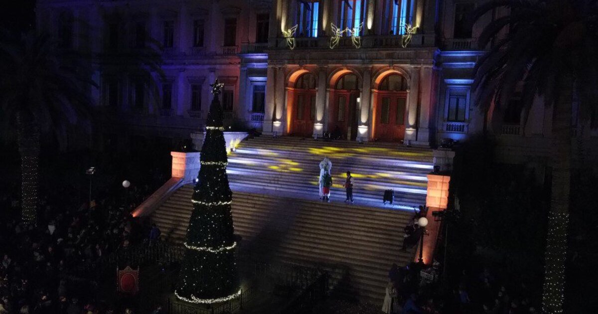 Φαντασμαγορική η φωταγώγηση του Χριστουγεννιάτικου δέντρου στη Σύρο