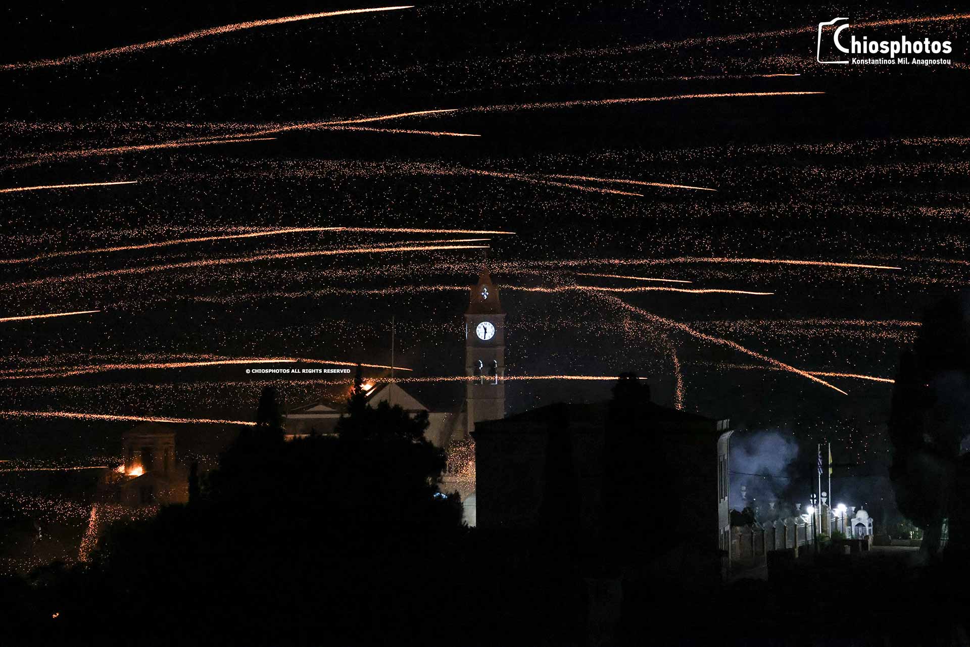 Το φαντασμαγορικό έθιμο του Ρουκετοπόλεμου στο Βροντάδο της Χίου