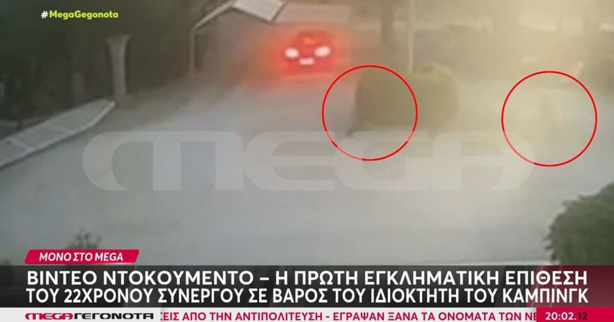 Βίντεο ντοκουμέντο δημοσίευσε το Mega για τη διπλή δολοφονία στο κάμπινγκ της Φοινικούντας, στο οποίο αποτυπώνεται η πρώτη απόπειρα κατά του 68χρονου ιδιοκτήτη του κάμπινγκ από τον 22χρονο φερόμενο ως συνεργό του φονικού η οποία καταγράφηκε στις 7 Σεπτεμβρίου.