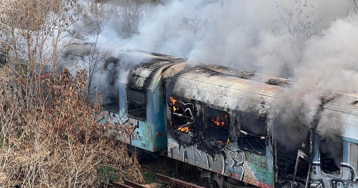 Φωτιά σε εγκαταλελειμμένα βαγόνια στη Λάρισα