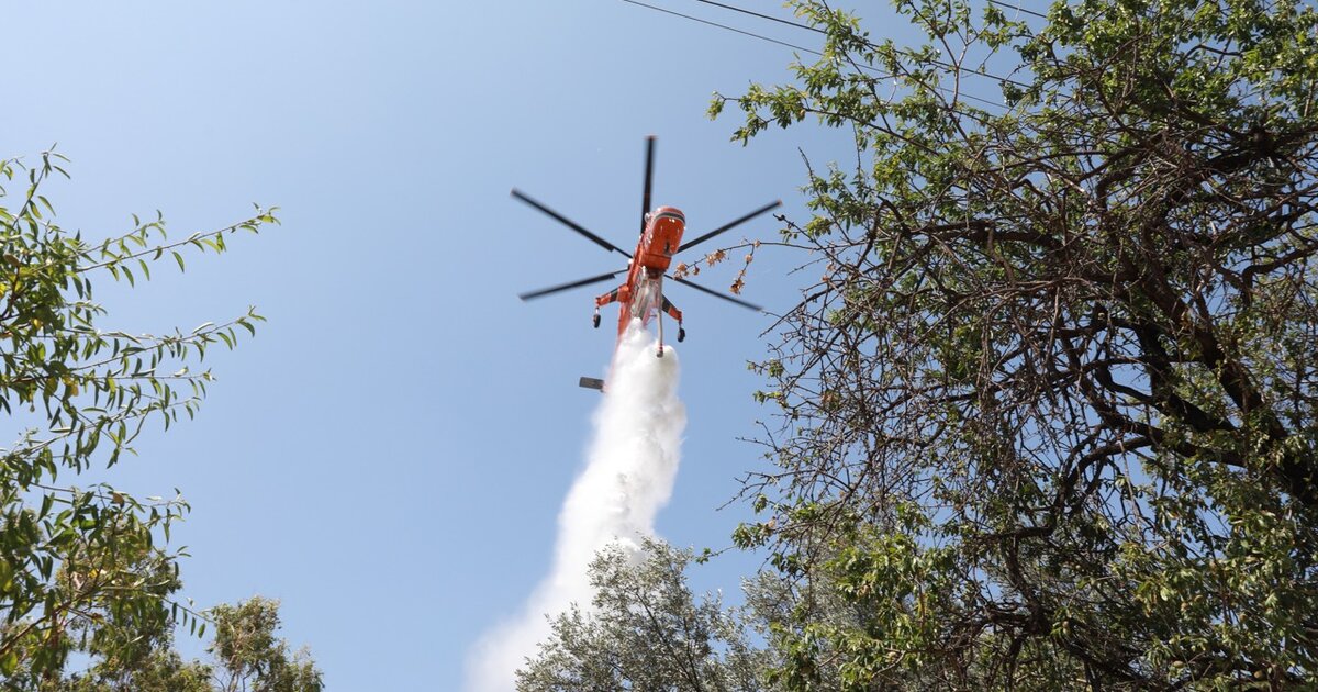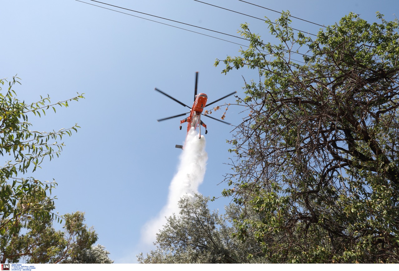 Από αέρος συνδράμει ένα ελικόπτερο, ενώ στην περιοχή βρίσκονται και εθελοντές πυροσβέστες.