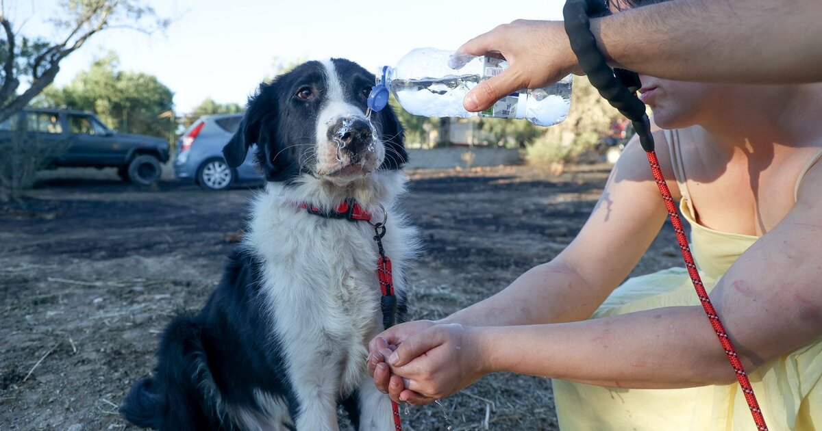 Φωτιά σε Πικέρμι και Σπάτα: Η στιγμή που ένας σκύλος δέχεται φροντίδα και ηρεμεί (βίντεο)
