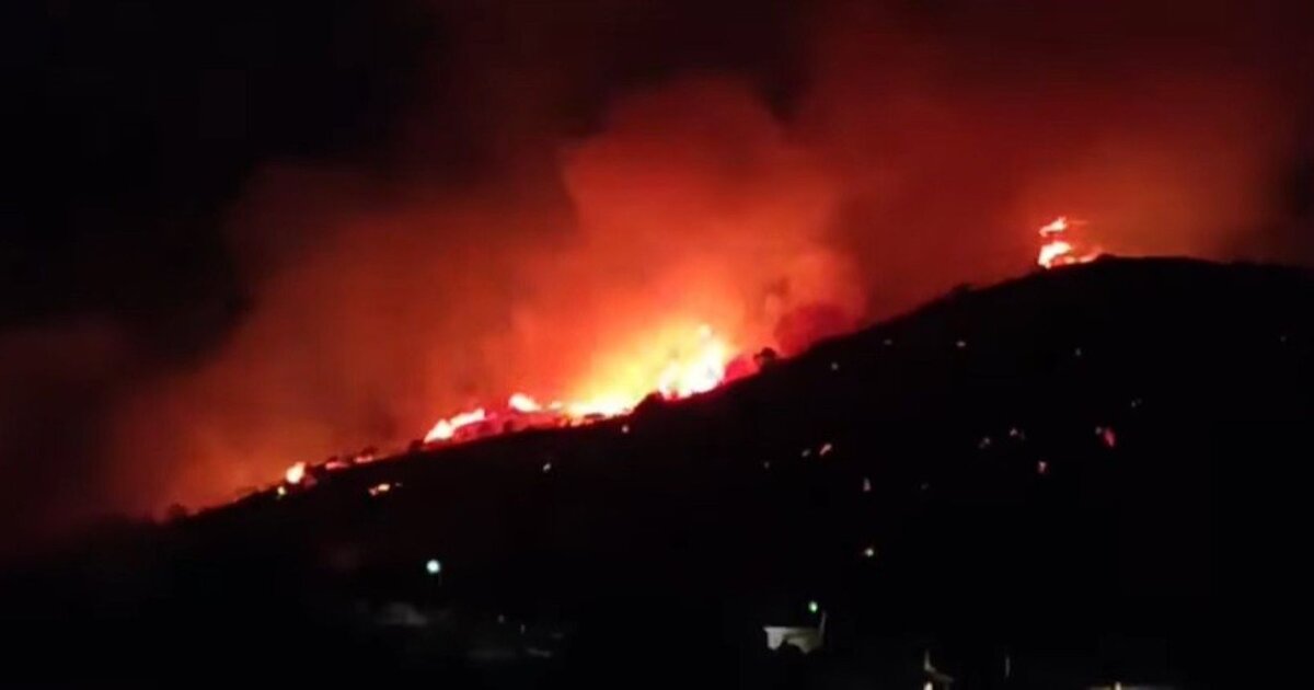 Ο καπνός από τη φωτιά είναι ορατός από χιλιόμετρα ενώ οι φλόγες πλησιάζουν επικίνδυνα κατοικημένες περιοχές, σύμφωνα με το evima.gr.