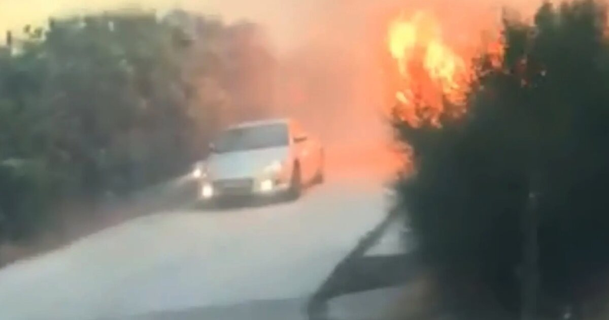 Το αυτοκίνητο πέρασε μέσα από τις φωτιές σε ένα εφιαλτικό στιγμιότυπο.