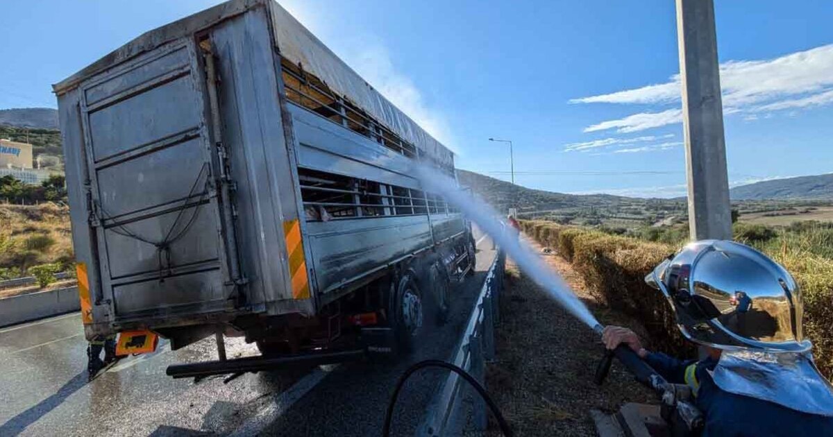 Φωτιά ξέσπασε σε φορτηγό που μετέφερε ζώα – Άμεση η επέμβαση της Πυροσβεστικής