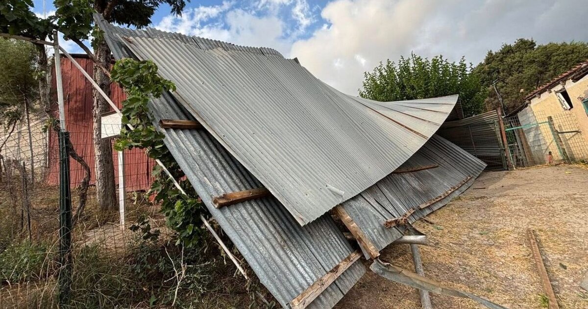 Σαν... φτερό σηκώθηκε από τους δυνατούς ανέμους ολόκληρη τσίγκινη σκεπή ποιμνιοστασίου στη Γραμμένη του Δήμου Μακρακώμης, στη Φθιώτιδα, το απόγευμα της Πέμπτης (31/7/25).