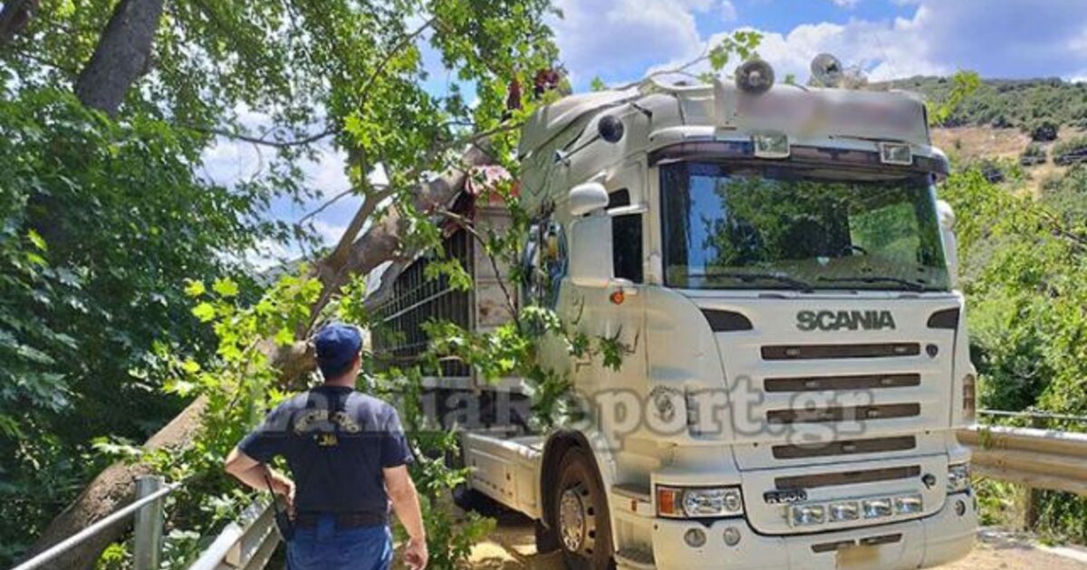 Στο σημείο διεκόπη η κυκλοφορία, ενώ πυροσβέστες από το ΠΚ Αμφίκλειας, έσπευσαν στο σημείο να κόψουν το δέντρο ώστε να απεγκλωβιστεί το μεγάλο όχημα.