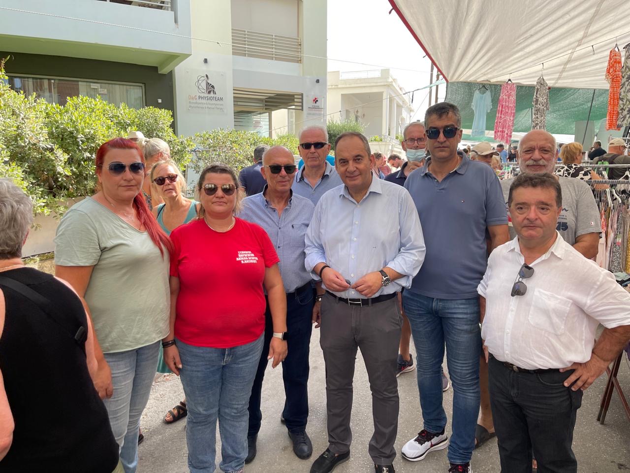 Η επίσκεψη πραγματοποιήθηκε λίγες ημέρες μετά την ψήφιση στην Βουλή της ρύθμισης που διαγράφει πρόστιμα και καταργεί την απαίτηση καταβολής τους τα οποία είχαν επιβληθεί το 2023 σε παραγωγούς και επαγγελματίες εμπόρους της Λαϊκής Αγοράς Αγίου Νικολάου Λασιθίου.