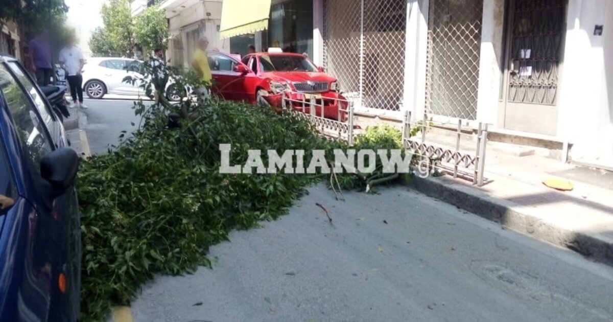 Απίστευτο τροχαίο με taxi στο κέντρο της Λαμίας