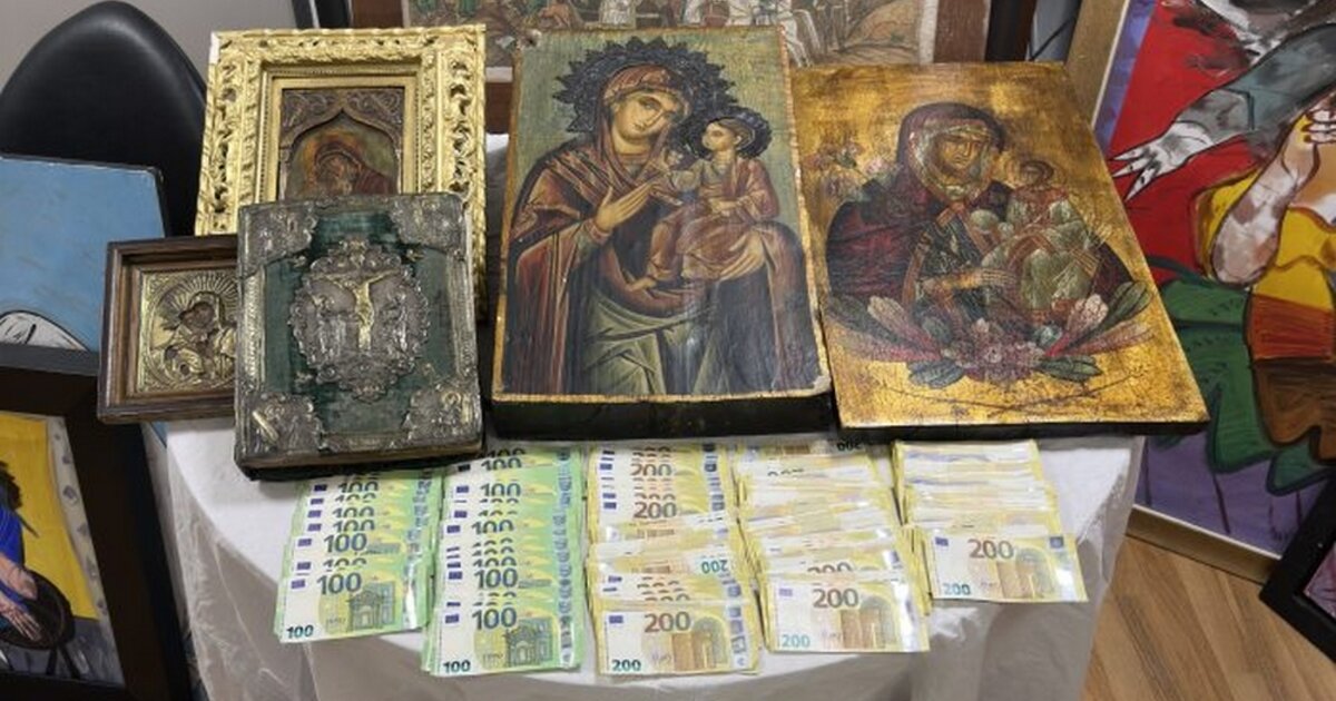 Όπως επισημαίνεται από την ΕΛΑΣ κατά τη συντονισμένη αστυνομική επιχείρηση της Διεύθυνσης Αντιμετώπισης Οργανωμένου Εγκλήματος, που πραγματοποιήθηκε την Παρασκευή 20 Μαρτίου, κατασχέθηκαν 321 έργα τέχνης, τέσσερις ξύλινες αρχαίες ιερές εικόνες, Ευαγγέλιο, τρεις αρχαίοι αμφορείς, αντικείμενα βυζαντινής περιόδου, μεγάλα χρηματικά ποσά, όπλο, φυσίγγια και ψηφιακά πειστήρια.