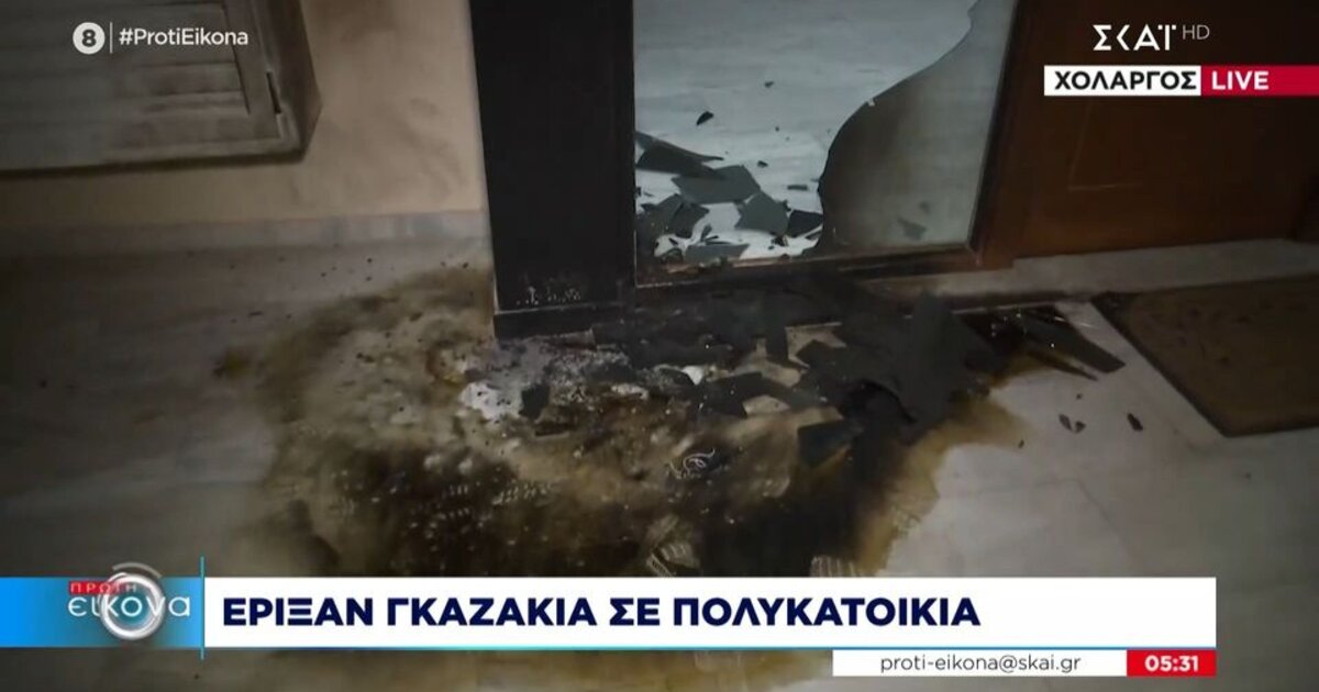 Γκαζάκια, από τα οποία προκλήθηκε έκρηξη, τοποθέτησαν άγνωστοι τα ξημερώματα σε είσοδο πολυκατοικίας επί της Χρυσοστόμου Σμύρνης στον Χολαργό Αττικής.