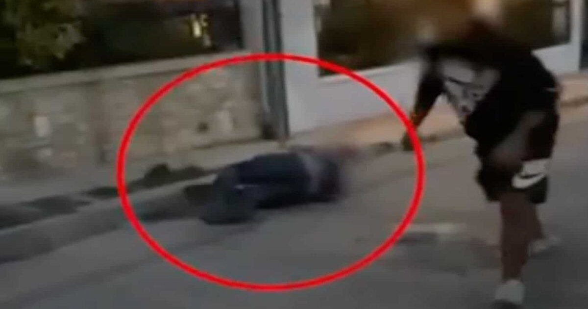 Λίγα δευτερόλεπτα αργότερα, ενώ το βίντεο συνεχίζει να γράφει, ο 17χρονος δράστης τον εγκαταλείπει πεσμένο στο δρόμο και αρχίζει να τον βρίζει χυδαία.