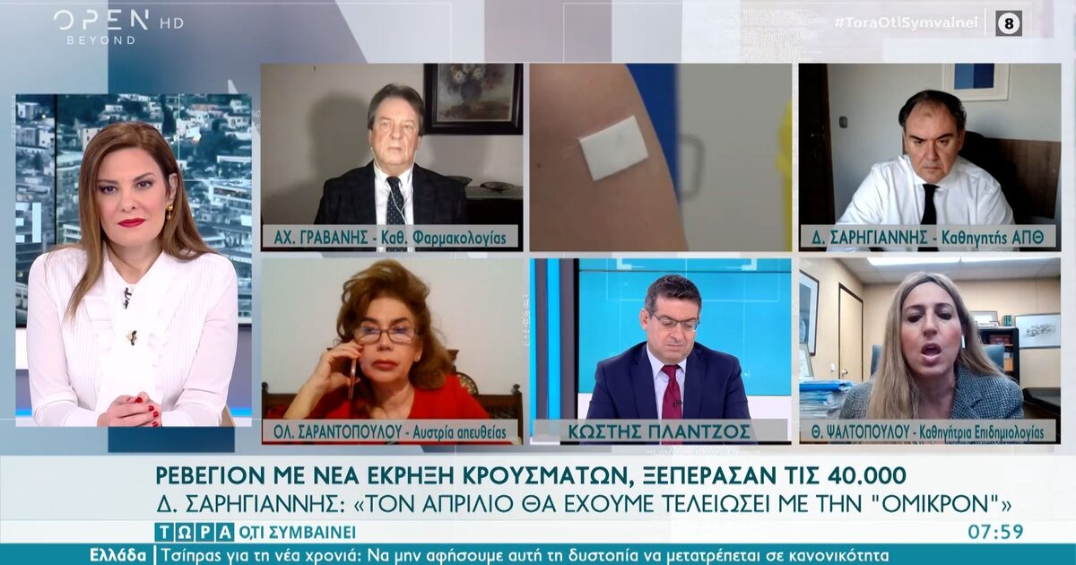 Ο Αχιλλέας Γραβάνης καθηγητής Φαρμακολογίας στο Πανεπιστήμιο Κρήτης, ο Δημοσθένης Σαρηγιάννης καθηγητής Περιβαλλοντικής Μηχανικής της Πολυτεχνικής Σχολής του ΑΠΘ, η Θεοδώρα Ψαλτοπούλου Παθολόγος – καθηγήτρια Επιδημιολογίας και Προληπτικής Ιατρικής και η Όλγα Σαραντοπούλου πρόεδρος Ελληνικής εταιρίας Αυστρίας μίλησαν για τον κορωνοϊό και την μετάλλαξη Όμικρον.