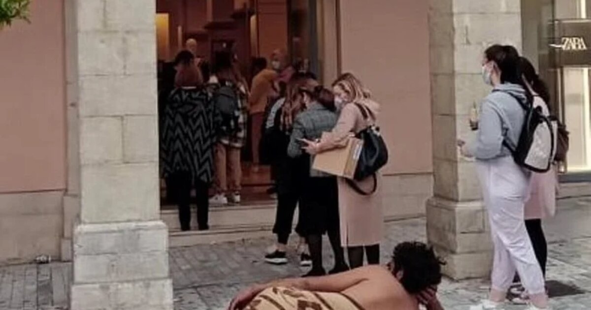 Γυμνός άστεγος στην ουρά πολυκαταστήματος στην Πάτρα!