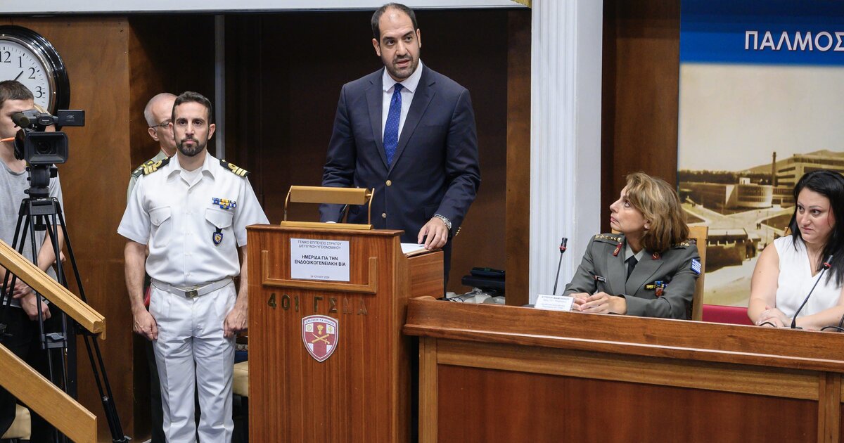 Ο Υφυπουργός Εθνικής Άμυνας κ. Γιάννης Κεφαλογιάννης πραγματοποίησε σήμερα, Τετάρτη 24 Ιουλίου 2024, χαιρετισμό σε εκδήλωση με θέμα «Ενδοοικογενειακή Βία», που διοργανώθηκε από τη Διεύθυνση Υγειονομικού του Γενικού Επιτελείου Στρατού, στο 401 Γενικό Στρατιωτικό Νοσοκομείο.