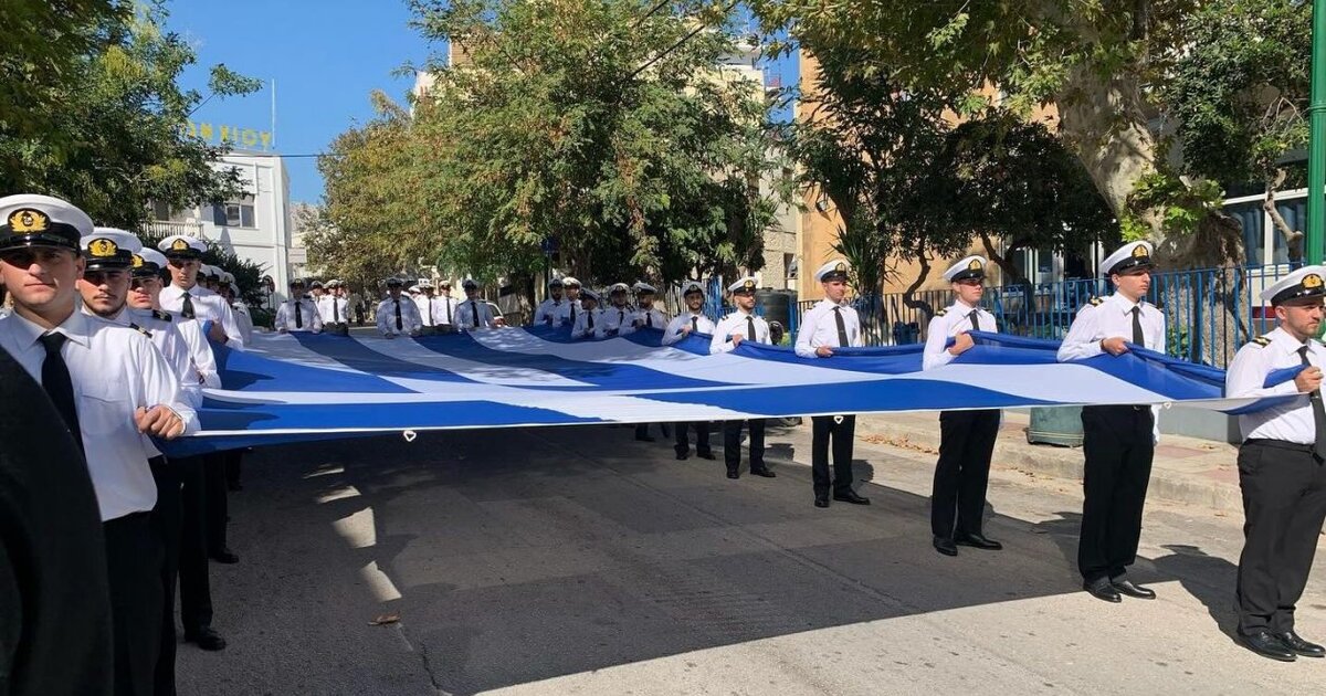Χίος: Υψώθηκε η τεράστια γαλανόλευκη στο λιμάνι του νησιού