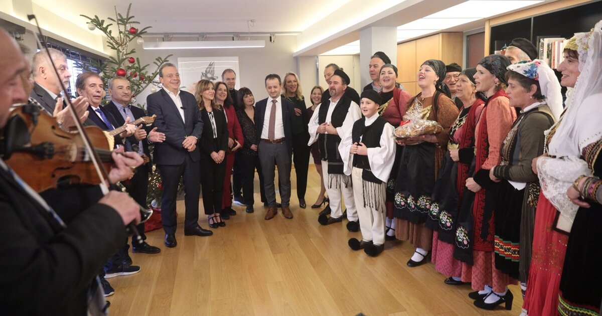 Χριστουγεννιάτικα κάλαντα στον Σωκράτη Φάμελλο και ανταλλαγή δώρων στην Κουμουνδούρου