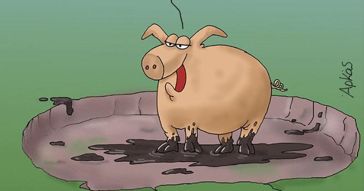 Όπως φαίνεται στο σκίτσο που ανάρτησε βρίσκεται ένα γουρούνι μέσα σε λάκκο χωρίς λάσπη λέγοντας "Κάθε φορά που πλησιάζουν εκλογές, δε μας αφήνουν σταγόνα".