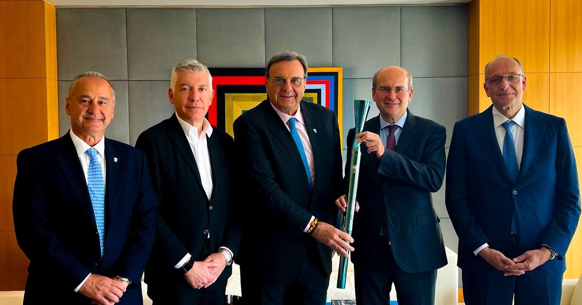 Ο κ. Κούβελος μαζί με τον Γενικό Γραμματέα Στέφανο Χανδακά, τον Πρόεδρο της Επιτροπής Ολυμπιακής Λαμπαδηδρομίας Θωμά Τόκα και το μέλος και Πρόεδρο της ΕΟΚ Βαγγέλη Λιόλιο έδωσαν στον κ. Χατζηδάκη ως συμβολικό δώρο, τη Δάδα των Ολυμπιακών Αγώνων Milano Cortina 2026 ως ένδειξη ευγνωμοσύνης για την παραχώρηση του Ολυμπιακού Κωπηλατοδρομίου προκειμένου να ξεκινήσουν από την ΕΟΕ – με τη χορηγία της Alpha Bank – τα έργων αποκατάστασης για πρώτη φορά μετά το 2003.
