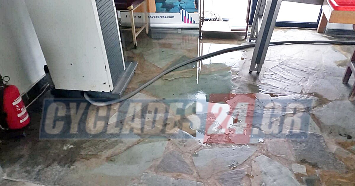 Οι εγκαταστάσεις του κρατικού αερολιμένα Νάξου “υπέφεραν” αυτό το διάστημα από την κακοκαιρία, με αποτέλεσμα να πλημμυρίσει ο χώρος ελέγχου των χειραποσκευών.